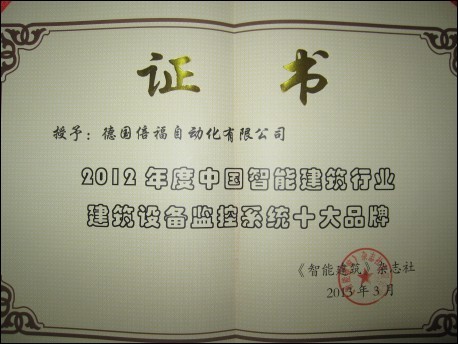 2013年3月20日上午,2013中國智能建筑行業(yè)高峰論壇暨2012年度中國智能建筑行業(yè)產(chǎn)品分系統(tǒng)十大品牌頒獎大會在北京紫玉飯店多功能廳隆重召開,德國倍福在此次論壇上榮獲“2012年度中國智能建筑行業(yè)建筑設(shè)備監(jiān)控系統(tǒng)十大品牌”。 此次論壇由《智能建筑》雜志社主辦,相關(guān)業(yè)界專家、設(shè)計院、系統(tǒng)集成商代表,行業(yè)用戶、產(chǎn)品廠商以及行業(yè)媒體約200余位來賓齊聚一堂,共同見證了智能建筑行業(yè)領(lǐng)先企業(yè)一年來的辛勤努力所放射出榮耀之光的一刻。 論壇評選出了2012年度中國智能建筑行業(yè)產(chǎn)品分系統(tǒng)十大品牌,包括“中國智能建筑行業(yè)建筑設(shè)備監(jiān)控系統(tǒng)十大品牌”、“智能家居系統(tǒng)十大品牌”、“能源管理系統(tǒng)十大品牌”、“會議擴聲系統(tǒng)十大品牌”、“ 一卡通系統(tǒng)十大品牌”。