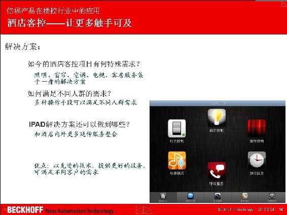 2013 年 6 月 9 日上午,由千家網主辦的“2013年綠色智能建筑運維管理趨勢論壇”在廣州進出口商品交易會展館A區(qū)6.1號館隆重舉辦,活動邀請了國內外知名企業(yè)高層與業(yè)界精英針對“綠色智能建筑運維管理趨勢”問題進行了深入地探討與交流,與會人員各抒己見,共話當前綠色智能建筑運營、維護、管理中的問題及探討未來發(fā)展趨勢。 德國倍福自動化有限公司技術支持工程師包立應邀出席了本次論壇,并在論壇上作了名為“倍福產品在樓控行業(yè)中的應用——樓宇自動化新技術”的主題報告。報告介紹了倍福的智能樓宇行業(yè)產品和解決方案在樓宇自控、樓宇改造、酒店客控、智能照明等領域的技術優(yōu)勢和應用情況,向現場與會的嘉賓展示了Beckhoff在智能樓宇行業(yè)的發(fā)展現狀和未來發(fā)展趨勢。 在樓宇自動化領域,倍福(Beckhoff)可全方位的設計集成式樓宇自動化方案:家居自動化照明、幕墻控制、操作和監(jiān)控、中央空調系統(tǒng)(HVAC)、獨立房間控制、遠程維護和能源數據記錄等。由于其開放式接口是基于IT 和Windows 標準的,因此Beckhoff 基于PC和以太網的控制技術自然就非常適用于樓宇自動化領域。此外、開放性是倍福樓宇自動化的優(yōu)勢所在,這樣的優(yōu)勢不但體現在其開放式的控制架構上,更體現在其集成性上。倍福所支持的通信協(xié)議豐富,EtherNet、TCP/IP、EnOcean、BacNet、RS232、RS485、LON、EIB/KNX、DALI、DMX、M-Bus,可滿足不同智能建筑的應用需求。 本次論壇旨在促進各方智慧碰撞,促進行業(yè)的健康發(fā)展,加強各企業(yè)的交流合作,共同開發(fā)綠色智能建筑這一巨大的市場,實現各方共贏。智能樓宇行業(yè)生產企業(yè)、用戶、工程商、集成商等業(yè)界人士歡聚一堂,就業(yè)內一些熱點問題進行深度探討,并根據目前綠色建筑節(jié)能的現狀,剖析了綠色智能建筑在運營、維護和管理中遇到的問題,共同展望了智能樓宇行業(yè)未來的發(fā)展遠景。