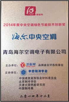 海爾中央空調斬獲第八屆中國空調品牌盛會綠色節(jié)能創(chuàng)新技術大獎