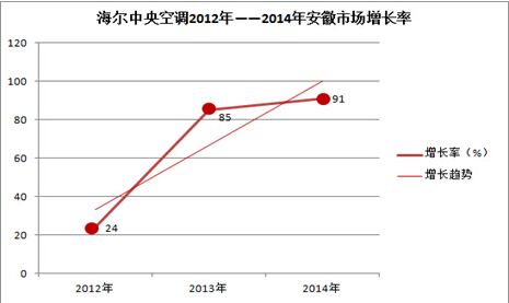 海爾中央空調(diào)2012年——2014年安徽市場增長趨勢圖