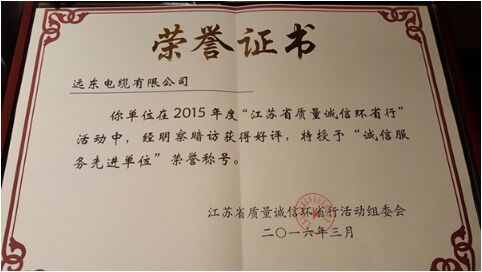 3月15日,2015年度“江蘇質(zhì)量誠信環(huán)省行”活動(dòng)總結(jié)表彰大會(huì)在南京舉行。遠(yuǎn)東智慧能源股份有限公司(簡稱:遠(yuǎn)東智慧能源 股票代碼:600869)全資子公司遠(yuǎn)東電纜有限公司在2015年度“江蘇省質(zhì)量誠信環(huán)省行”活動(dòng)中,經(jīng)明察暗訪獲得好評(píng),被授予“江蘇省誠信服務(wù)先進(jìn)單位”榮譽(yù)稱號(hào),成為江蘇線纜行業(yè)唯一一家獲得該榮譽(yù)的企業(yè)。遠(yuǎn)東智慧能源投資人、市場總監(jiān)助理兼遠(yuǎn)東電纜市場總監(jiān)慎葉昌代表公司參會(huì)并領(lǐng)獎(jiǎng)。