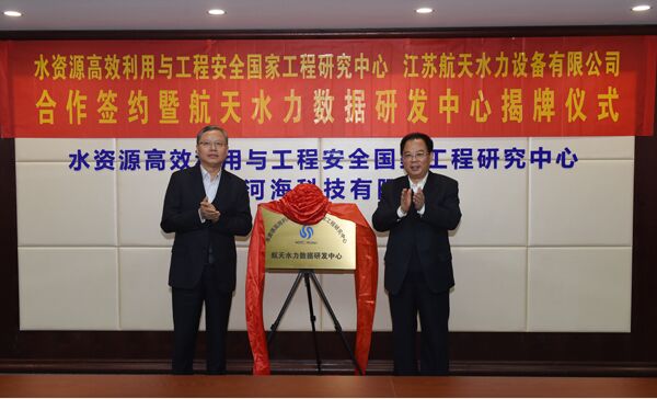 12月28日,水資源高效利用與工程安全國家工程研究中心與江蘇航天水力設(shè)備有限公司舉行合作簽約暨航天水力數(shù)據(jù)研發(fā)中心揭牌儀式。中國航天科技集團科技委副主任、航天六院科技委主任譚永華,江蘇航天水力設(shè)備有限公司總經(jīng)理李彥喜、副總經(jīng)理邵春兵,河海大學(xué)校長徐輝,河海大學(xué)副校長、水資源高效利用與工程安全國家工程研究中心主任鄭金海等出席儀式。徐輝校長與譚永華主任共同為航天水力數(shù)據(jù)研發(fā)中心揭牌,水資源高效利用與工程安全國家工程研究中心常務(wù)副主任陳達(dá)與李彥喜總經(jīng)理簽署合作協(xié)議。鄭金海副校長主持儀式。