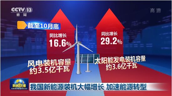 截至10月底,全國累計發(fā)電裝機(jī)容量約25億千瓦,同比增長8.3%。其中,風(fēng)電、太陽能發(fā)電裝機(jī)容量分別約3.5億千瓦和3.6億千瓦,分別同比增長16.6%和29.2%,保持快速增長。