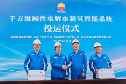 據(jù)悉,該電解水制氫示范項目,用于煉油加氫,可減少化石能源的消耗,減少二氧化碳等溫室氣體的排放,有助于實現(xiàn)碳達(dá)峰、碳中和要求。項目建設(shè)單位為中國石油天然氣股份有限公司獨山子石化分公司,制氫系統(tǒng)由中國石油深圳新能源研究院、獨山子石化公司、中國寰球工程公司、昆侖數(shù)智科技有限責(zé)任公司聯(lián)合研發(fā)。
