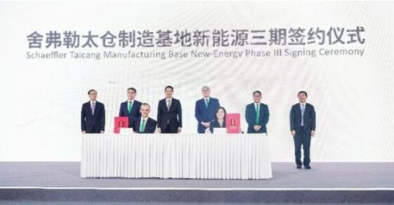 在新能源二期工廠啟用儀式上,舍弗勒與太倉高新區(qū)簽訂新能源三期項目投資協(xié)議,繼續(xù)加碼新能源業(yè)務,擴大在華投資。新能源三期項目占地約70,000平方米,投資額達2億歐元(約合15億人民幣),聚焦新能源電驅動領域,涵蓋如輪轂電機、電橋減速箱、混動變速箱等新能源汽車產品的生產制造,以及物流倉儲等配套設施。