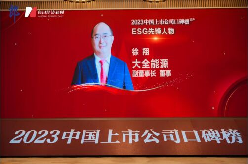 11月17日,由每日經濟新聞發(fā)起的“中國上市公司口碑榜”評選獲獎名單于第十二屆中國上市公司高峰論壇上正式揭曉。大全能源副董事長徐翔憑借其帶領企業(yè)ESG治理實踐,持續(xù)深化企業(yè)可持續(xù)發(fā)展的卓越表現(xiàn),榮獲2023年度“ESG先鋒人物獎”。此次ESG先鋒人物獎的評選,評價體系立足于自身海量結構化數(shù)據(jù)、AI機器學習技術等,綜合上市公司各類公告、媒體輿情、政府機構及第三方等數(shù)據(jù)來源,形成指標數(shù)據(jù)庫;同時運用多種算法實現(xiàn)指標數(shù)據(jù)的提取、計算和評級結果輸出,加工成評價結果數(shù)據(jù)庫,最終實現(xiàn)上市企業(yè)的ESG績效的有效量化,獎項的科學性和含金量廣受各界認可。作為今年新設重磅獎項之一,“ESG先鋒人物獎”的關注度與份量不言而喻。此次徐翔獲此殊榮,一方面,源于徐翔以先進的ESG理念引領大全能源發(fā)展的出色實踐;另一方面,也正是業(yè)界對于大全能源積極踐行ESG可持續(xù)發(fā)展、推動綠色轉型先鋒地位的高度認可。