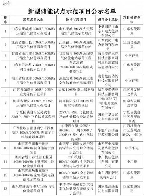 附件:新型儲(chǔ)能試點(diǎn)示范項(xiàng)目公示名單