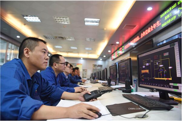 5月6日,工程技術(shù)人員在銅陵有色熱電項(xiàng)目控制室里監(jiān)控生產(chǎn)流程。銅陵是國家節(jié)能減排和循環(huán)經(jīng)濟(jì)“雙示范”城市,銅陵有色熱電項(xiàng)目總投資5.5億元,是銅陵市節(jié)能減排重大項(xiàng)目,采用2臺25兆瓦高溫高壓背壓機(jī)組,集中對銅陵市循環(huán)經(jīng)濟(jì)工業(yè)試驗(yàn)園企業(yè)供熱、供電,淘汰園區(qū)18臺小鍋爐,年節(jié)約標(biāo)煤65700噸,年減少煙塵排放量141.4噸、二氧化硫排放量434.1噸、氮氧化物排放量106噸。