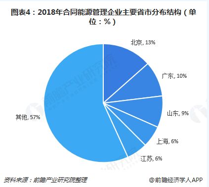 四、企業(yè)地域競(jìng)爭(zhēng)格局 節(jié)能市場(chǎng)的快速發(fā)展使節(jié)能服務(wù)行業(yè)受到越來(lái)越多的關(guān)注,行業(yè)中的參與者也迅速增加,我國(guó)超過(guò)80%的節(jié)能服務(wù)公司是在“十二五”期間成立或轉(zhuǎn)型開展節(jié)能服務(wù)業(yè)務(wù),據(jù)中國(guó)節(jié)能協(xié)會(huì)節(jié)能服務(wù)產(chǎn)業(yè)委員會(huì)(EMCA)發(fā)布數(shù)據(jù)顯示,截至2017年年底,全國(guó)從事節(jié)能服務(wù)的企業(yè)為6137家,節(jié)能行業(yè)從業(yè)人員總數(shù)已達(dá)68.5萬(wàn)。 從企業(yè)地域分布情況來(lái)看,北京、廣東、山東、上海、江蘇分別占據(jù)了前五位,分別為824家,591家,527家,362家和348家,占總體的比例43.2%,可以看出節(jié)能服務(wù)行業(yè)市場(chǎng)規(guī)模不斷增長(zhǎng),區(qū)域發(fā)展不均衡。由于東西部在技術(shù)、資金、人才上存在差異,行業(yè)內(nèi)企業(yè)布局不合理,東西部發(fā)展差距明顯。