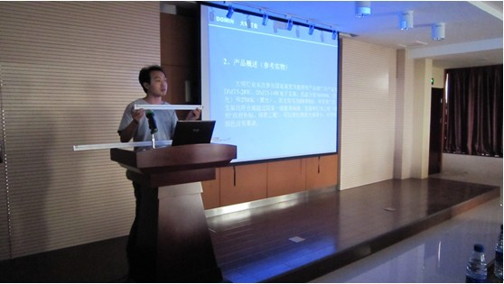 圖為大明燈業(yè)高效照明產品推廣項目部辦公室主任朱司鳳向推廣人員講解推廣流程及國家對推廣工作的要求及規(guī)定