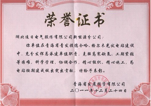 2011年12月20日,由追日電氣總承包的青海德令哈10Mw光伏電站項目和格爾木5Mw光伏電站項目在通過了青海省電力公司的復驗之后,分別開始并網發(fā)電。兩個項目成功并網發(fā)電后,格爾木項目于12月23日、德令哈項目于12月27日,均順利通過了青海省能源局的預驗收,獲得了1.15元/度的電價政策。這兩個項目是國家8月1日光伏發(fā)電上網電價政策出臺后,率先實現(xiàn)發(fā)電的項目,尤其是德令哈項目是海西州德令哈地區(qū)第一個實現(xiàn)并網發(fā)電的項目。鑒于追日電氣在這兩個項目中的優(yōu)異表現(xiàn),12月25日,在由青發(fā)投公司組織的兩個光伏電站按期并網發(fā)電總結表彰大會上,追日電氣獲得了青發(fā)投公司頒發(fā)的獎狀及1萬元現(xiàn)金獎勵。至此,由追日電氣總承包的兩個大型光伏電站項目劃上了一個圓滿的句號。我們向所有參加這兩個光伏電站建設工程的追日人表示忠心和祝賀和誠摯的敬意!