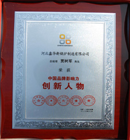 河北鑫華新鍋爐制造有限公司日前受邀,參加在北京釣魚臺(tái)由“亞洲品牌建設(shè)協(xié)會(huì)”、“第一財(cái)經(jīng)日?qǐng)?bào)社”、“商務(wù)時(shí)報(bào)”主辦的2008年亞洲影響力品牌領(lǐng)袖年會(huì),暨2008年度亞洲·中國(guó)·品牌500強(qiáng)推介發(fā)布頒獎(jiǎng)盛典,并成功獲得“中國(guó)品牌競(jìng)爭(zhēng)力500強(qiáng)”的企業(yè)榮譽(yù),公司總經(jīng)理賈樹軍榮獲“中國(guó)品牌影響力創(chuàng)新人物”稱號(hào)。