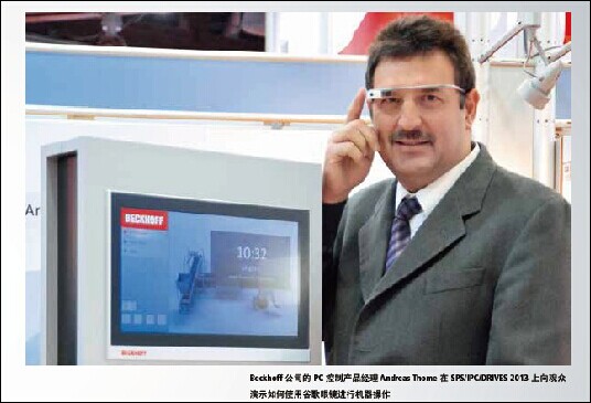 去年在德國紐倫堡舉辦的“2013 年德國紐倫堡工業(yè)自動化及元件展覽會(SPS/IPC/DRIVES 2013)上,Beckhoff 展出了通過專注于谷歌眼鏡的技術研究開發(fā)而成的針對機械操作的最新解決方案。有了具有上網(wǎng)功能的谷歌眼鏡,狀態(tài)或對話消息可以通過一個頭戴式顯示器直接投射到人眼中。在線信息和通信也可以用這種創(chuàng)新的設備實現(xiàn),且錯誤信息可以使用觸摸板進行確認。Beckhoff 公司的 PC 控制產(chǎn)品經(jīng)理 Andreas Thome 堅定地認為,谷歌眼鏡是互聯(lián)網(wǎng)和自動化技術相融合推動工業(yè) 4.0 發(fā)展的最突出的例子。 Beckhoff 公司的 PC 控制產(chǎn)品經(jīng)理 Andreas Thome 在 SPS/IPC/DRIVES 2013 上向觀眾演示如何使用谷歌眼鏡進行機器操作。 是什么讓谷歌的這些“增強現(xiàn)實眼鏡”從競爭中脫穎而出,用作工業(yè)環(huán)境中的控制元件? Andreas Thome:谷歌眼鏡配置包括頭戴式顯示器、攝像頭、麥克風和用作揚聲器的骨傳導耳機 — 它還配備了振動傳感器并在耳機側面集成了一個觸摸板。有了這些功能,谷歌眼鏡非常適合用于可視化、診斷和服務,以及技術干預和個人通信。不同于傳統(tǒng)的控制理念,該設備屬于被稱為“可穿戴計算”的創(chuàng)新技術 — 一組每天可以通過用戶佩戴來大幅提高其連通性的設備。事實上,很多這些設備現(xiàn)在都已經(jīng)具有現(xiàn)代智能手機所具備的所有功能。更重要的是,谷歌眼鏡型設備使用起來都很方便,因為其半透明遮陽板符合人體工學,且主要都是免提操作。最大的優(yōu)點在于 — 也著眼于工業(yè)自動化 — 現(xiàn)有的移動計算技術可以在我們的感官知覺或我們的肢體動作沒有任何限制的情況下使用 — 而且無需電線或電纜。 如何將谷歌眼鏡與 PC 控制整合在一起? Andreas Thome:使用 Beckhoff 的 TwinCAT 自動化軟件可以將谷歌眼鏡與控制技術輕松集成在一起。眼鏡與萬維網(wǎng)服務器通訊,該服務器提供了通過 TwinCAT 控制的機器狀態(tài)信息。眼鏡接收此狀態(tài)信息并以信號或錯誤消息的形式表現(xiàn)出來,甚至還可以指出任何問題的確切位置。確認和復位機器狀態(tài)等工作也可在現(xiàn)場通過谷歌眼鏡完成。 在哪些情況下可以使用此方案? Andreas Thome:潛在的應用場景可以被歸類為“直接或間接”。例如,操作人員可以使用眼鏡“直接”監(jiān)控機器或甚至采取行動來直接改變或更正機器狀態(tài),而不總是需要在現(xiàn)場完成。對于大型機器和生產(chǎn)設備,操作人員需要在設備周圍走動并檢查特定臨界點的工藝狀態(tài)值,同時查看設備是運作情況。必要時,操作人員可以采取手動操作,因為雙手都是自由的!伴g接”選項涉及到信息的收集和保存,不完全依賴于正在運行的進程。這些選項包括,例如,研究制造商有關特定機器組件的文檔資料,在 Internet 上搜索信息,并通過電子郵件和支持視頻聊天的聊天工具進行人際互動。然而,直接和間接應用的組合也是可能的。即使一臺機器正在運行,操作人員也可以與專家聯(lián)系并通過眼鏡將正在運轉的機器的視頻發(fā)送給專家,以咨詢一些具體的問題。隨后,專家可以給現(xiàn)場操作人員提供技術支持 — 以視頻或語音消息的形式 — 這樣就可以采取相應的糾正措施。這是被描述為“你看到的就是我看到的”(WYSIWIS)的 IT 概念也可以在工業(yè)環(huán)境下應用的范例。 靜態(tài)和動態(tài)的機器狀態(tài)信息可以被投射到谷歌眼鏡的頭戴式顯示器上。 如果出現(xiàn)錯誤,谷歌眼鏡會輕輕振動,提醒操作人員注意出錯消息。一旦錯誤被糾正,該消息可以直接通過增強現(xiàn)實眼鏡復位。 有關在日常生活中使用這種新的控制技術有什么新的想法嗎? Andreas Thome:有許多不同的方法來實現(xiàn)。例如,維修工程師可以使用集成的攝像頭捕捉到電機或限位開關的 QR 碼,然后檢索有關其功能、歷史狀態(tài)或當前狀態(tài)的信息。另一個辦法是瀏覽包含機器控制軟件相關信息的網(wǎng)站 — 大小為 640×360 像素的分辨率,無需使用鼠標 — 這將是可行的,如果原始資料被格式化為與增強現(xiàn)實眼鏡同時使用。操作人員可以查找由制造商定義的計算機設置,然后采取適當?shù)男袆。也可以編寫在谷歌眼鏡上本地運行的特殊應用程序,并能夠通過 WLAN 使用如 OPC UA 或 TwinCAT ADS 等協(xié)議建立與機器控制計算機的連接。作為谷歌眼鏡技術研究的一部分,Beckhoff 提供二進制和模擬變量的實時可視化應用程序作為本地程序。在所有這些情況下,可以顯示狀態(tài)數(shù)據(jù)(變量,誤差)。此外,操作人員可以使用谷歌眼鏡來修改設備設置或周期,如開始或停止生產(chǎn)步驟。 未來,谷歌眼鏡和類似的增強現(xiàn)實眼鏡將取代傳統(tǒng)控制面板和操作理念嗎? Andreas Thome:不會。憑借其眾多的選件,谷歌眼鏡是提高操作和控制理念的杰出開發(fā)成果,但它并不能夠成為一個完整的替代裝置來控制機器或生產(chǎn)設施。傳統(tǒng)的機械控制終端(帶觸摸屏或帶鍵盤的顯示器)不能完全被取代 — 因為其分辨率更高且可讀性更好,而且集成了關鍵的控制元件,如急停開關或操縱桿。也可以這樣說,可以實現(xiàn)基于谷歌眼鏡的完整“無接觸控制”的愿景。我們發(fā)現(xiàn),未來,最有可能的是傳統(tǒng)的接觸和創(chuàng)新的非觸摸方