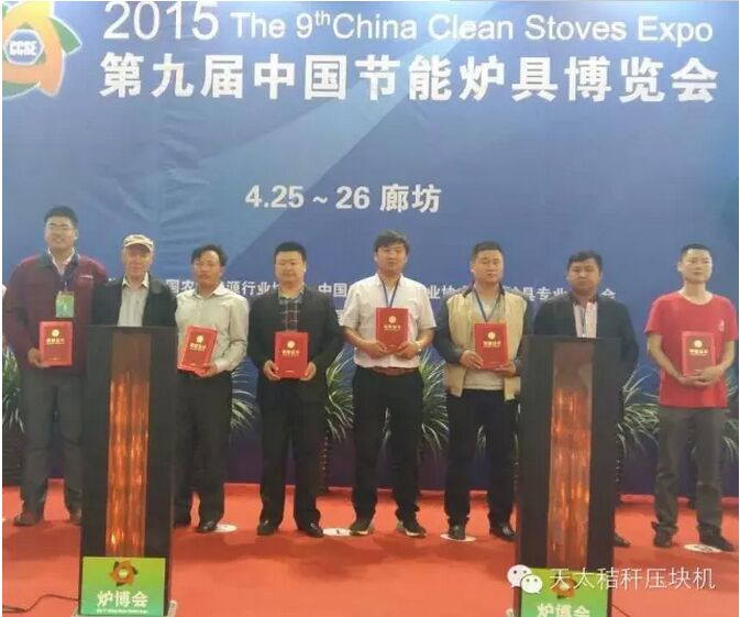 河北天太秸稈壓塊機榮獲第九屆爐博會優(yōu)秀產品證書