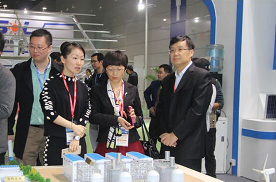 領(lǐng)導(dǎo)巡視遠(yuǎn)東智慧能源展臺(tái) 國家能源局新能源和可再生能源司副司長朱明(中)聽取 蔣錫培(右三)對(duì)智慧能源戰(zhàn)略規(guī)劃介紹
