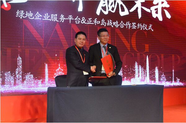 蔣錫培(左)代表正和島與綠地企業(yè)服務(wù)平臺(tái)簽約
