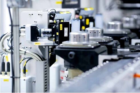 帶有上下芯棒(左圖和右圖)的 XTS 動子沿著“帽形”或“杯形”方向拾取擴散器。還可以看到的是用于在線掃描相機前面旋轉(zhuǎn)部件的鏈輪 緊跟旋轉(zhuǎn)工位后面的是用于檢測材料偏差情況的控制工位和用于檢查擴散器底部的工位。第一個 XTS 直線段的最后一個相機工位負責(zé)檢查法蘭是否有質(zhì)量缺陷。這意味著第一個直線段控制六個相機工位。加上完全一樣的線掃描和旋轉(zhuǎn)工位,總共有九個工位。