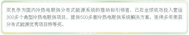 運用分布式能源系統(tǒng)后,湘江歡樂城項目將每年節(jié)省標煤1290噸,減排二氧化碳5085噸、二氧化硫29噸、氮氧化合物14噸、節(jié)能率達27.2%。 天然氣分布式能源在提升能源效率、清潔環(huán)保、安全性以及削峰填谷等方面具有多重優(yōu)勢,是促進我國能源結(jié)構(gòu)轉(zhuǎn)型的重要選擇方向。隨著湘江歡樂城的建成,必將成為雙良又一閃耀的“樣板工程”。雙良將繼續(xù)以科技創(chuàng)新為驅(qū)動,專注節(jié)能環(huán)保產(chǎn)業(yè),用先進的科技為綠色發(fā)展之路提供有力支撐。