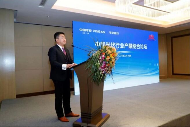 為落實碳中和戰(zhàn)略、發(fā)力綠色金融,3月19日,平安銀行聯(lián)合中國光伏行業(yè)協(xié)會在合肥舉辦中國光伏行業(yè)產(chǎn)融結(jié)合論壇,并聯(lián)合協(xié)會和平安證券發(fā)布《中國光伏行業(yè)分析及圖覽(2021)》。本次會議,共有來自國家發(fā)改委、行業(yè)協(xié)會的專家及來自大唐集團、中節(jié)能集團、云南能投、阿特斯、陽光電源、天合光能、特變電工、晶科能源、東方日升、通威集團等20余家行業(yè)頭部企業(yè)高管參會。