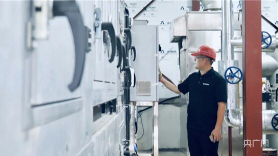 工作人員調(diào)試能耗更低的節(jié)能除濕系統(tǒng)(央廣網(wǎng)發(fā) 通訊員供圖)