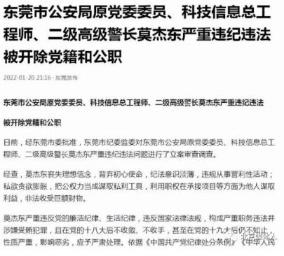 據(jù)東莞新聞報道,2021年10月莫杰東被立案審查后,對犯罪事實供認不諱,初步確認貪污受賄高達6000多萬,還牽扯出一大批貪官。原來此人利用手中的公權(quán)力(可以監(jiān)聽、錄影、調(diào)用、刪除東莞市的監(jiān)控系統(tǒng)),以此販賣或威脅當事人的監(jiān)控視頻,并從而謀取巨大私利。