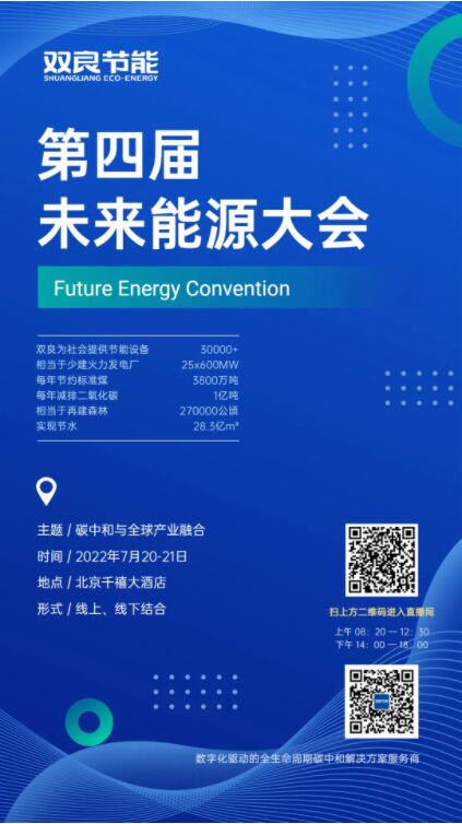 7月20-21日,由中國(guó)能源研究會(huì)、中能網(wǎng)主辦的“第四屆未來(lái)能源大會(huì)”將在北京拉開(kāi)帷幕。雙良節(jié)能將出席此次峰會(huì),邀您共聚北京第四屆未來(lái)能源大會(huì),攜手助力碳中和與全球產(chǎn)業(yè)融合。