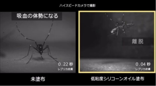由于過(guò)往的技術(shù)是通過(guò)讓蚊子厭惡的氣味等實(shí)現(xiàn)驅(qū)蚊,這其中就會(huì)有人不適應(yīng)氣味和粘膩性,也會(huì)有部分地區(qū)的嬰幼兒因限制而無(wú)法使用;ㄍ鯙橹谱鞒鋈魏稳硕寄芊判氖褂,從預(yù)防蚊媒傳染病來(lái)守護(hù)生命的產(chǎn)品,展開(kāi)了各種各樣的討論,在對(duì)蚊子足部特性的研究中,發(fā)現(xiàn)了在某種條件下可創(chuàng)造出讓蚊子厭惡的肌膚狀態(tài)。實(shí)驗(yàn)結(jié)果表明,涂有牽引蚊子足部的低粘度硅油的皮膚,會(huì)觸發(fā)蚊子的逃跑行為,從而有效阻止蚊子在皮膚表面停留,大大降低吸血行為的發(fā)生概率。這是一項(xiàng)與以往完全不同的新技術(shù),期待今后能在廣泛地區(qū)活用。