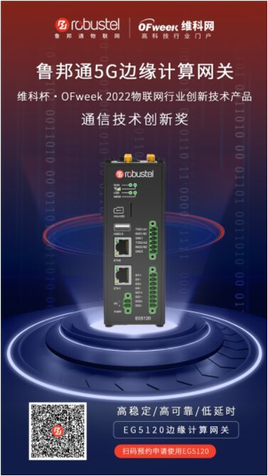 近日,由高科技行業(yè)門戶OFweek維科網(wǎng)主辦、OFweek物聯(lián)網(wǎng)承辦的“OFweek 2022(第七屆)物聯(lián)網(wǎng)產(chǎn)業(yè)大會”暨“維科杯·OFweek 物聯(lián)網(wǎng)行業(yè)年度評選”在深圳福田大中華喜來登酒店成功舉辦,會議期間有多家工業(yè)互聯(lián)網(wǎng)平臺榮獲獎項,其中,廣州魯邦通5G高性能工業(yè)邊緣計算網(wǎng)關(guān)EG5120一舉斬獲“維科杯•OFweek 2022物聯(lián)網(wǎng)行業(yè)創(chuàng)新技術(shù)產(chǎn)品獎——通信技術(shù)創(chuàng)新獎”,受到場企業(yè)與專家關(guān)注。