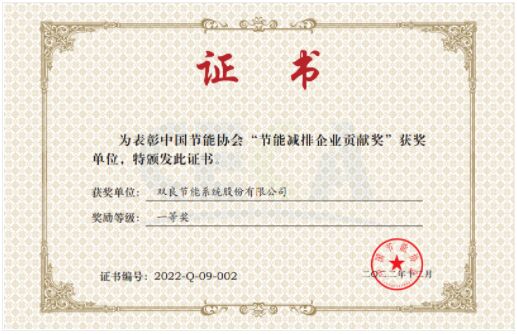 雙良節(jié)能榮獲2022年中國節(jié)能協(xié)會節(jié)能減排企業(yè)貢獻(xiàn)獎(jiǎng)一等獎(jiǎng)。