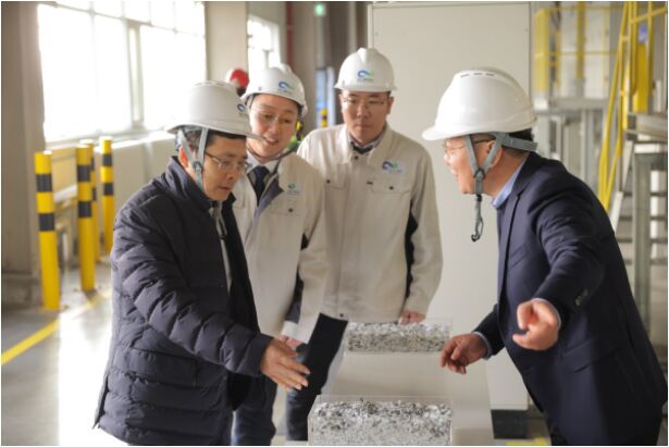全國人大代表周云杰(左一)在海爾再循環(huán)互聯(lián)工廠調(diào)研