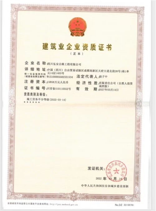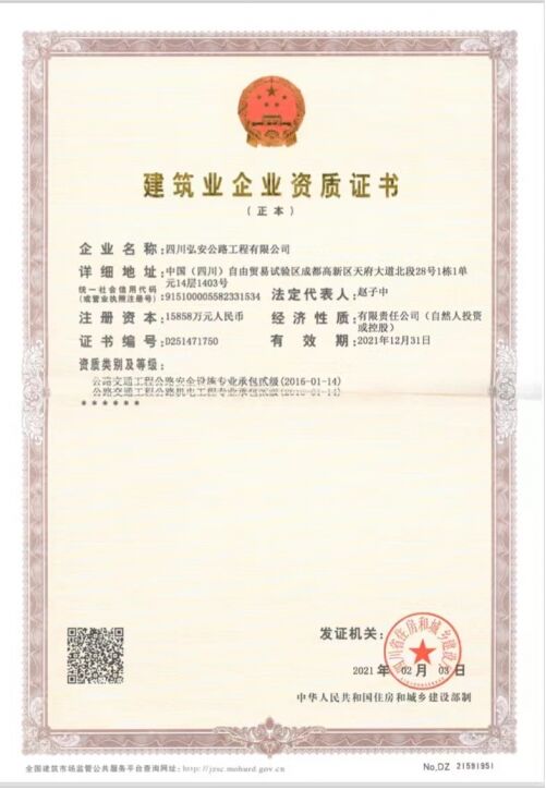 弘安公路前身是成都利發(fā)交通設(shè)施有限公司,成立于2000年,目前已發(fā)展成集研發(fā),生產(chǎn),施工于一體的綜合性高新技術(shù)企業(yè)。經(jīng)過(guò)長(zhǎng)年累月、鍥而不舍地大量改革,科學(xué)技術(shù)創(chuàng)新,弘安公路研發(fā)了十三項(xiàng)實(shí)用新型專(zhuān)利和發(fā)明專(zhuān)利,包括《道路收費(fèi)系統(tǒng)》,《交通標(biāo)志牌的新型材料》,《波形護(hù)欄防撞氣囊》,《新型隔音墻(吸塵,吸音)》,《汽車(chē)油箱防盜油》等等專(zhuān)利產(chǎn)品,在交通設(shè)施,交通工程,交通工具等方面提供了更為低碳環(huán)保的方案及產(chǎn)品,為全世界人類(lèi)做出更大貢獻(xiàn)。目前公司的資質(zhì)有《交通工程總承包二級(jí)》,《機(jī)電工程總承包二級(jí)》,《勞務(wù)資質(zhì)》不分等級(jí)。