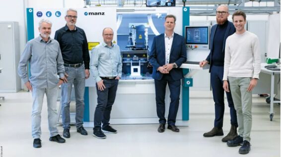項(xiàng)目參與者在 BLS 500 前(從左到右):倍福銷售和系統(tǒng)咨詢工程師 Oliver Heilig,Manz 市場營銷和企業(yè)傳播負(fù)責(zé)人 Axel Bartmann,Manz 軟件核心設(shè)計(jì)和產(chǎn)品開發(fā)主管 Stephan Lausterer,倍福汽車行業(yè)經(jīng)理 Jörg Rottkord 和 Tilman Plaß,以及 Manz 流程開發(fā)人員 Felix Röckel