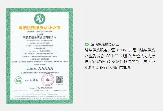 雙良節(jié)能憑借著雄厚的技術(shù)創(chuàng)新實(shí)力和優(yōu)異的清潔智慧供熱項(xiàng)目運(yùn)營(yíng)能力,通過(guò) “清潔供熱服務(wù)認(rèn)證”5A級(jí)證書(shū)。