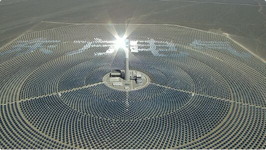 據(jù)了解,該項(xiàng)目位于青海省海南生態(tài)太陽能發(fā)電園區(qū)內(nèi),裝機(jī)規(guī)模1000兆瓦,包含光伏發(fā)電部分交流側(cè)容量900兆瓦和配套太陽能熱發(fā)電系統(tǒng)100兆瓦,其中100兆瓦光熱電站采用熔鹽塔式技術(shù)路線,鏡場(chǎng)總采光面積約50萬平方米,吸熱器熱功率260兆瓦,以二元熔鹽作為傳熱儲(chǔ)熱介質(zhì),等效儲(chǔ)熱時(shí)長(zhǎng)達(dá)8小時(shí)。