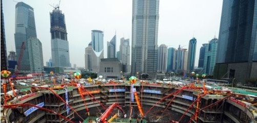 在過去的三天三夜的時間里,這18臺泵完成了一項驚人創(chuàng)舉。 它們把總計60000方的超高強度混凝土在60小時內(nèi)一次性澆注成一塊底板。4年后,在這塊底板上,將矗立起一棟高632米的大廈。中國第一高樓(世界第二高樓)在此誕生。 中國泵王力鑄中國第一高樓 據(jù)觀察到,參與施工的18臺泵均是被譽為“中國泵王”的三一品牌。 “三天三夜,一次性不間斷泵送60000方超高強度混凝土,這不僅在中國,哪怕在世界來講,都是第一次!鄙虾=üさ默F(xiàn)場工程師說。 毗鄰的上海環(huán)球金融中心混凝土工程總方量為23萬多方,而上海中心一次性底板澆注量就相當(dāng)于泵送了四分之一個“環(huán)球”。 此次泵送的混凝土強度等級為C50,但是“混凝土在添加了外加劑之后,實際泵送的混凝土強度等級達到了C100”。 在業(yè)界看來,如果將泵送普通混凝土比喻成抽自來水,那么泵送C100這樣超高強度的混凝土就是抽糯米團子。
