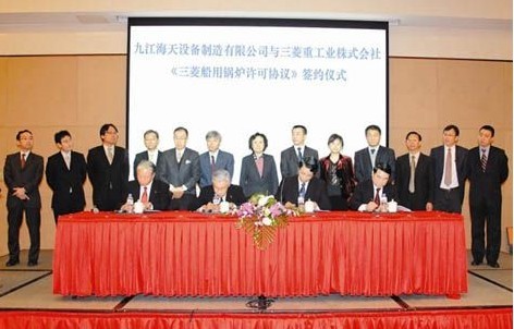 中船集團(tuán)消息:2月28日,中船集團(tuán)公司下屬的九江海天設(shè)備制造有限公司與日本三菱重工業(yè)株式會(huì)社在上海舉行了《三菱船用鍋爐許可協(xié)議》的簽約儀式。這標(biāo)志著雙方的合作正式啟動(dòng),九江海天將引進(jìn)日本三菱船用鍋爐許可證技術(shù),促進(jìn)中船集團(tuán)公司與日本三菱重工的共同發(fā)展。 中船集團(tuán)公司副總經(jīng)理路小彥在會(huì)見日本三菱重工客人時(shí)表示,多年來,中船集團(tuán)公司與日本三菱重工一直有著良好的合作。去年6月,中船集團(tuán)公司與日本三菱重工簽訂了船用鍋爐合作意向書。經(jīng)過近半年的交流和洽談,九江海天與日本三菱重工就引進(jìn)船用鍋爐制造技術(shù)達(dá)成一致意見。此次鍋爐項(xiàng)目的合作不僅填補(bǔ)了中船集團(tuán)公司船用鍋爐配套業(yè)務(wù)的空白,也標(biāo)志著中船集團(tuán)公司與日本三菱重工的合作進(jìn)入了一個(gè)新階段。相信隨著中船集團(tuán)公司與日本三菱重工的不斷發(fā)展,雙方未來的合作空間將會(huì)越來越大。 日本三菱重工原動(dòng)機(jī)事業(yè)本部副事業(yè)本部長和仁正文在發(fā)言中指出,作為日本船用鍋爐產(chǎn)量第一的企業(yè),三菱重工擁有先進(jìn)的技術(shù)和管理方式。通過此前的多次交流發(fā)現(xiàn),九江海天不僅在工廠設(shè)備、生產(chǎn)能力、品質(zhì)保證等方面比較過硬,而且工作人員也有較高的技術(shù)水平與工作熱忱,是非常值得信賴的合作伙伴。為了加強(qiáng)今后的合作,三菱重工將毫無保留地進(jìn)行技術(shù)支援與營銷支持,與中船集團(tuán)公司的造船事業(yè)以及九江市的經(jīng)濟(jì)共同發(fā)展。 據(jù)介紹,鍋爐產(chǎn)品是九江海天重點(diǎn)開發(fā)的產(chǎn)品,這與三菱重工欲在中國做大船用鍋爐市場的理念不謀而合。此次雙方合作的鍋爐產(chǎn)品將主要涉及燃油鍋爐、廢氣鍋爐、燃油/廢氣組合鍋爐,蒸發(fā)量為2~55蒸噸,其配套范圍基本上覆蓋了國內(nèi)的現(xiàn)有市場船型。