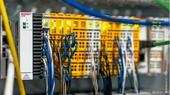 Stretch™ 的安全系統(tǒng)配備的是 EtherCAT I/O 端子模塊和黃色 TwinSAFE 安全模塊,機器人和遠程控制柜中都安裝了這些模塊