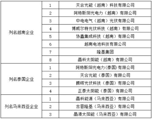 2012年,美國對中國光伏電池及組件進行“雙反”調查,并對中國相關企業(yè)征收了14.78%至15.97%的反補貼稅,以及18.32%至249.96%的反傾銷稅,由于“雙反”稅的界定方式在大陸以光伏組件組裝地為原產(chǎn)國,所以中國廠商為了規(guī)避“雙反”稅,紛紛選擇在東南亞、美洲、南美、墨西哥等地投資建廠,可以理解為,中國企業(yè)披上了東南亞的“馬甲”。