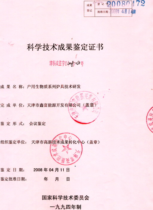 “戶用生物質(zhì)系列爐具技術(shù)研發(fā)項(xiàng)目” ,,于2008年4月14日通過天津市科學(xué)技術(shù)委員會(huì)組織的行業(yè)權(quán)威專家進(jìn)行的科技成果鑒定,綜合評(píng)價(jià)為“國(guó)內(nèi)領(lǐng)先”水平。國(guó)內(nèi)多家媒體,對(duì)公司先進(jìn)技術(shù)進(jìn)行了報(bào)道。